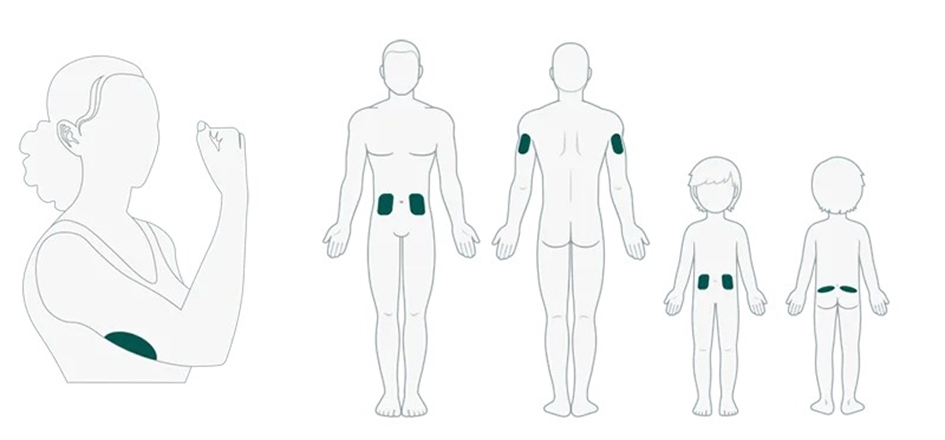 Jeżeli wybierzesz miejsce wprowadzenia na brzuchu (pośladku w przypadku dzieci), przyłóż sensor poziomo.